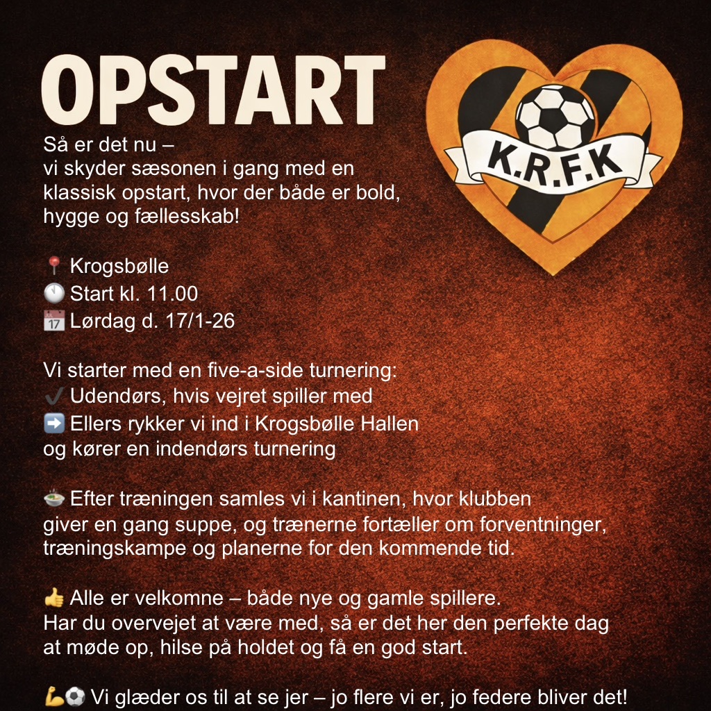 ⚽️ Opstart i Krogsbølle lørdag d. 17/1-26 kl. 11:00 ⚽️
